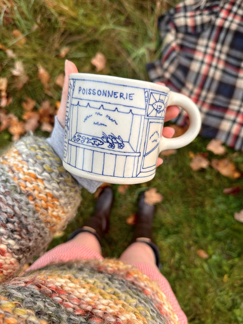 This recurring collection reinvents itself with each reappearance around the “Library” mug; a fan favourite. Inspired by the love of wandering through the streets and breaking up useful errands with spontaneous stops, this collection depicts whimsical storefronts.